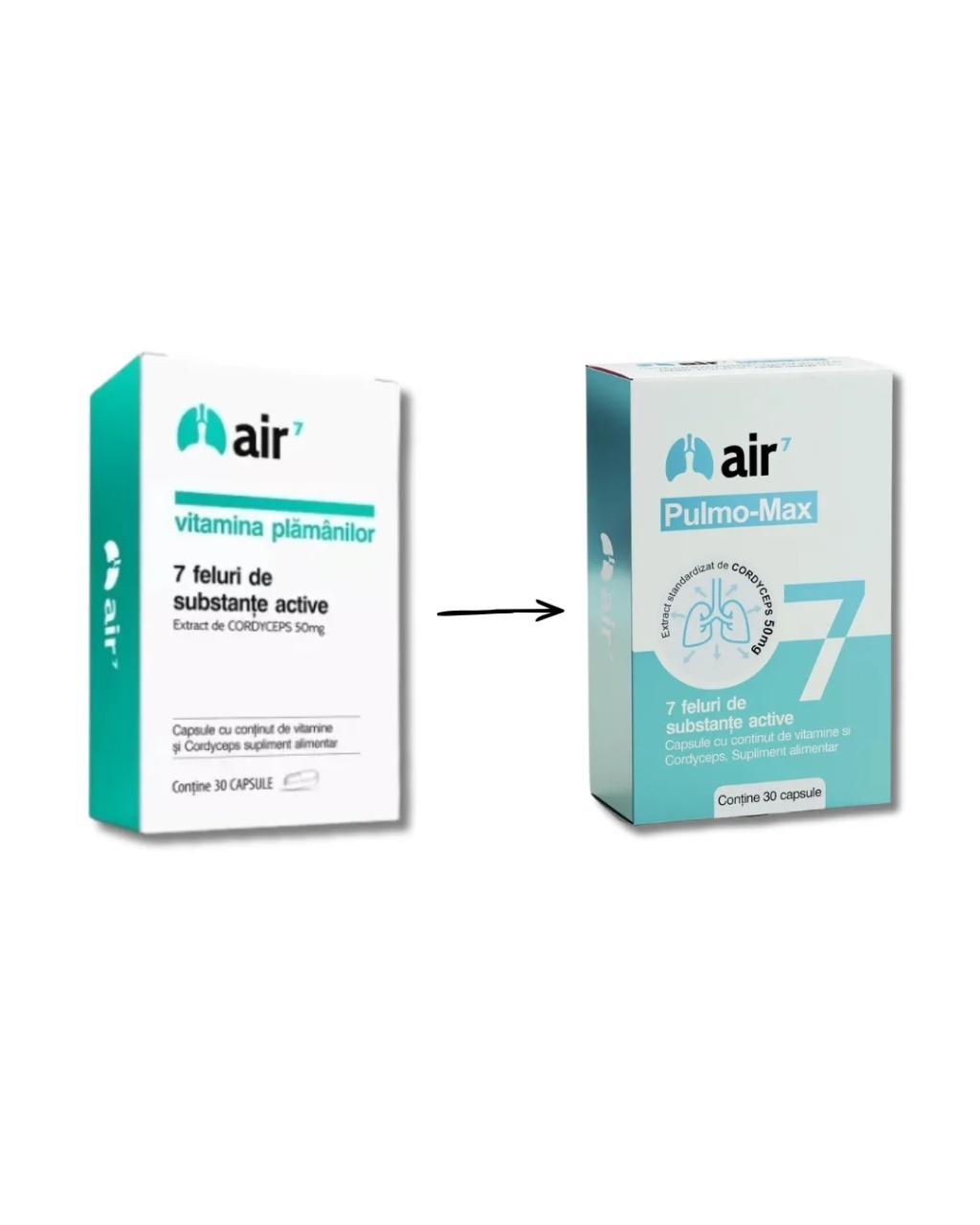Air7 Vitamina plamanilor, 30 capsule, Green Splid Caracteristici: conţine antioxidanți împotriva tulpinilor care irită tractul respirator, putand ajuta astfel cailor respiratorii prin mărirea producţiei de anticorpi; poate crește capacitatea plămânilor de oxigenare a sangelui, crescând astfel aportul de oxigen al organismului, poate ajuta oxigenul să ajungă mai repede la toate celule corpului; poate crește rezistența pulmonară la oboseală, crește performanța sportivă, ionizând sistemul nervos, poate contribui la protejarea celulelor împotriva stresului oxidativ, poate avea efect vasodilatator, poate contribui astfel la menţinerea sănătaţii vaselor de sânge; Air7 poate contribui la intărirea sistemului imunitar, poate contribui la eliberarea de energie la nivel celular, poate ajuta la imbunătăţirea capacităţii de utilizare a oxigenului în celule precum şi îmbunătăţirea circulaţiei sangvine; conține vitamine si minerale esențiale ce pot sustine vitalitatea organismului, în special a plămânilor si a cailor respiratorii. Substante active: Vitamina C – contribuie la funcționarea normală a sistemului imunitar, benefic pentru funcționarea normală a căilor respiratorii. Vitamina E – este un puternic antioxidant, contribuie la protejarea celulelor împotriva stresului oxidativ și joacă un rol important și în corecta funcționare a sistemului imunitar. Coenzima Q10 – poate îmbunătăți absorbția de oxigen, fiind un cofactor în lanțul respirator mitocondrial. Cordyceps – este cel mai căutat supliment nutritiv în rândul sportivilor de elită, are efecte benefice care contribuie la buna funcționare a căilor respiratorii. Vitamina D3 , Magneziu stearate , Vitamina A , Vitamina B6, Rutină. Compozitie: Ingrediente active Partea activă/utilă VRN/doza zilnică Vitamin D3-25 ug 1000 IU 500% Vitamin C 300 mg 375% Cordyceps sinensis 50 mg * Coenzim Q10 20 mg * Vitamin E 12 mg 100% Rutina 5 mg 95% Vitamin B6 1,4 mg 100% Vitamin A-800 ug 2664 IU 100% Magneziu-stearat 10 mg * VNR Valoarea Nutriţională de Referinţă pentru adulţi Mod de utilizare AIR 7 vitamina plamanilor: Pentru adulți se recomandă 1 capsulă pe zi după masa principală. Se recomanda un tratament de 3 luni consecutive pe an pentru a maximiza optimizarea tuturor vitaminelor din organism. Se păstrează la temperatura camerei 15 – 25 °C în ambalaj original. Prezentare : 30 de capsule