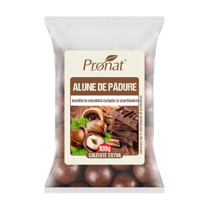 Alune de padure invelite in ciocolata cu lapte si scortisoara, 100g, Pronat