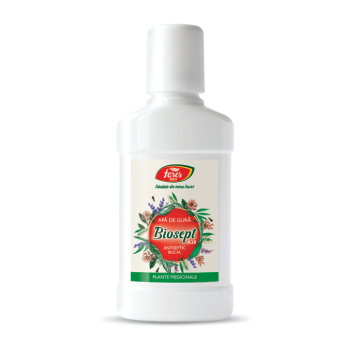 Apa de gura Biosept este un produs destinat ingrijirii orale, fiind un antiseptic cu efect puternic antiviral, cu ingrediente 100% de origine naturala.
