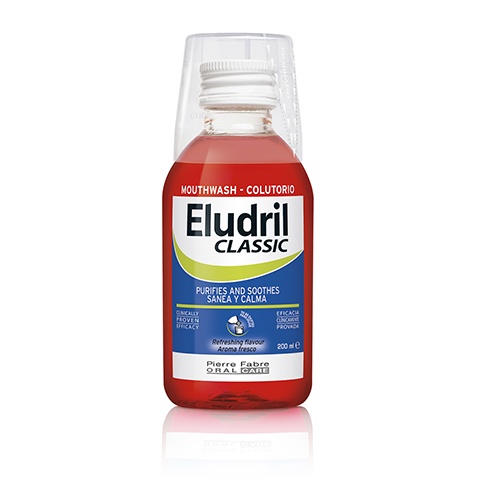 Apa de gura Eludril, 200ml, Pierre Fabre Eludril apa de gura antiseptica si analgezica cu un spectru larg de de actiune pentru ca vindecarea rapida este importanta. Gingivita, parodontita, detartraj, chirurgie parodontala, surfasaj radicular, extractii dentare, implantologie. Actiune: Bactericida si fungicida, antiplaca, antiinflamatorie gingivala, analgezica, cicatrizanta, reziduala (de peste 8 ore) Pastreaza echilibrul florei cavitatii bucale. Rezultate dovedite prin studii clinice* Prin ameliorarea principalilor indici clinici (de placa, gingival, cicatrizare, regenerarea gingiei) si reechilibrarea florei bacteriene, Eludril contribuie la controlul bolilor paradontale. Compozitie: O formula originala, brevetatata PFOC CLORHEXIDINA 0,10% – agent antiseptic de referinta in igiena bucala internationala cu cel mai larg spectru de actiune; CLORBUTANOL 0,50% – anestezic de contact cu actiune analgezica extinsa; ALCOOL. Mod de utilizare: Efect rezidual de 6 saptamani. Prezentare: 200ml