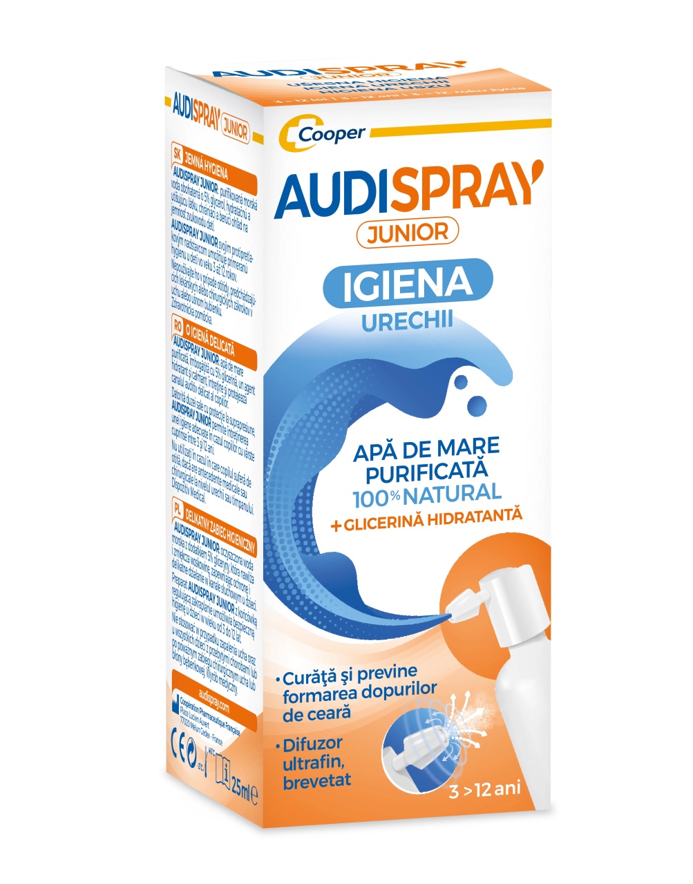 Audispray Junior, 25ml, Diepharmex Indicatii: este o solutie hipertonica pe baza de apa de mare controlata microbiologic care fludifica si dizolva cerumenul permitand dispersarea sa naturala. permite copiilor de la cea mai frageda varsta sa se obisnuiasca sa aiba o igiena regulata a urechii. elimina cu menajament orice exces de cerumen, praf si impuritati, prevenind formarea dopurilor. In caz ca dopul s-a format, Audispray junior faciliteaza extractia sa de catre medic. Administrare: Practicati una sau doua presiuni pe varful flaconului tinandu-l vertical. Masati baza urechii timp de 10 secunde. Inclinati capul in aceeasi parte pentru a elimina surplusul si stergeti. Fara a indeparta varful din flacon, nu uitati sa clatiti cu apa fierbinte dupa fiecare utilizare. Daca nu utilizati in mod regulat Audispray, pipeta se poate bloca pentru ca sarea se cristalizeaza. In acest caz scoateti pipeta si inmuiati-o in apa fierbinte timp de 30 de minute. Contraindicatii: A nu se utiliza fara sfatul medicului in urmatoarele cazuri : otita, dureri de ureche, perforarea timpanului si in cazul persoanelor predispuse ametelilor, sau care au suferit deja o operatie la nivelul urechii sau timpanului. Prezentare: 25ml