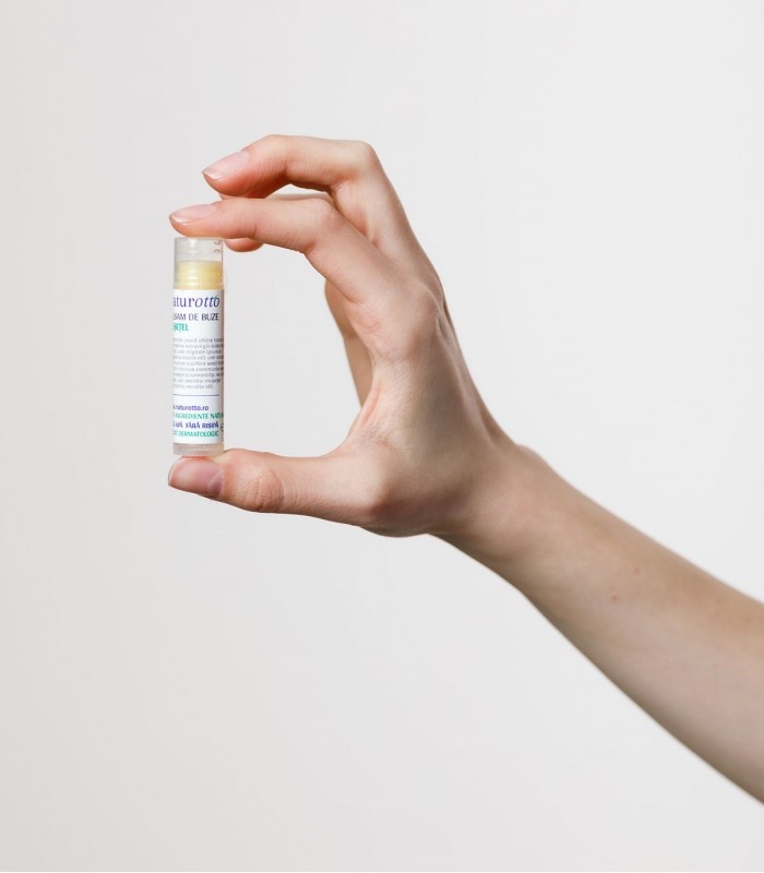Balsam de buze cu musetel, 4g, Naturotto Balsamul de buze cu mușețel ajută la refacerea pielii crăpate și uscate a buzelor, redându-le suplețea și aspectul sănătos. Acționează ca o barieră împotriva capriciilor vremii, precum vâtul sau temperaturile scăzute. Beneficii: hrănește buzele Ingrediente: ulei de măsline extravirgin*, ulei de migdale*, ulei de cocos virgin*, ulei de ricin, ulei de mușețel, ulei essential de mușetel, ceară de albine, * certificat organic. Fiecare ingredient din formula produsului are un rol activ benefic. Prin procesul de manufacturare folosit sunt păstrate toate proprietățile ingredientelor, nefiind procesate termic. Prezentare: 4g