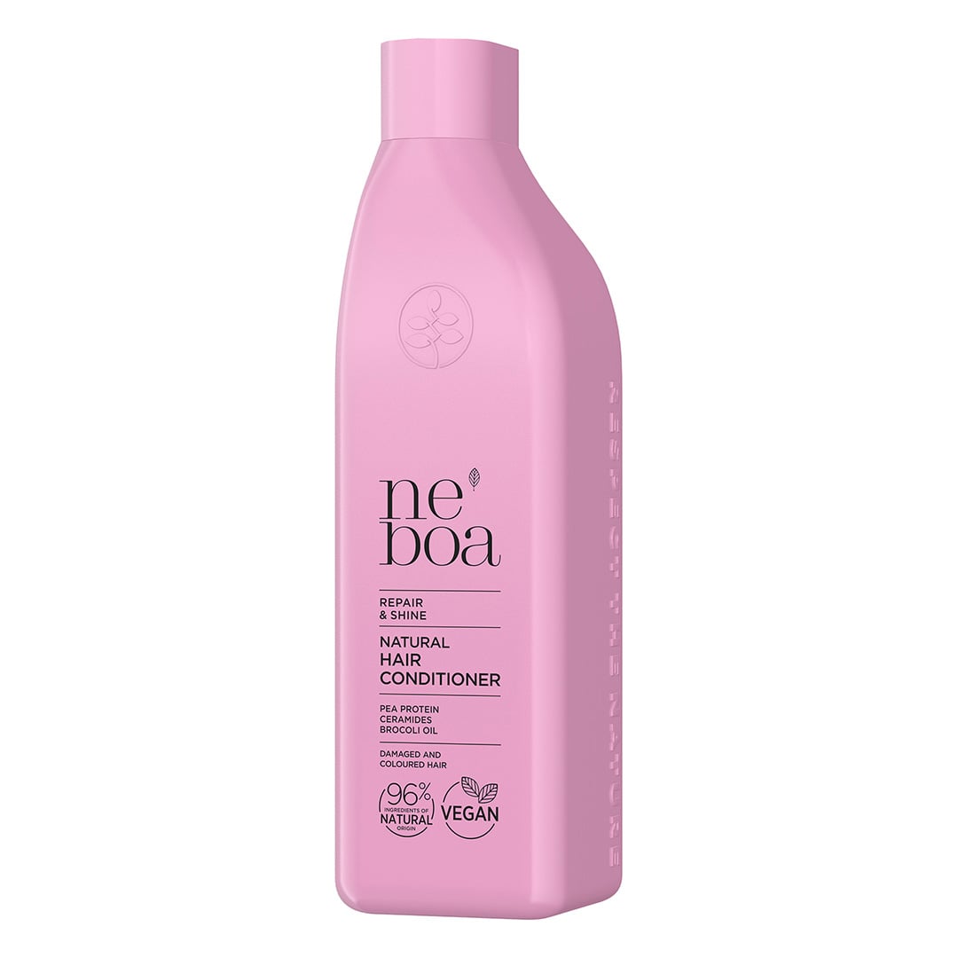 Balsam Reparator pentru Par, Repair & Shine, Neboa este ideal pentru parul deteriorat sau vopsit. Contine proteina din mazare, ceramide si ulei de broccoli.