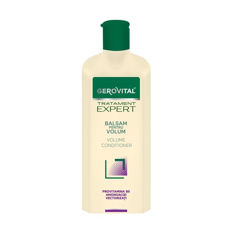 Balsam pentru volum Tratament Expert, 250 ml, Gerovital 1159 Părul lipsit de suplețe și volum și firele de păr rebele vor deveni trecut cu ajutorul gamei Gerovital Tratament Expert. Ingrediente active Atent realizat pentru părul lipsit de volum, balsamul are la bază o formulare inteligentă, special concepută pentru îngrijirea firului de păr fin și subțire. Acesta descurcă firele de păr fără să le îngreuneze, lăsând o textură plină și voluminoasă pentru mai mult timp. Mod de utilizare Utilizat după fiecare spălare, sau măcar o dată pe săptămână, pe părul proaspăt spălat cu Şamponul pentru volum, balsamul îţi ajută părul să-şi recapete elasticitatea, volumul, să devină uşor de pieptănat şi strălucitor. Prezentare : 250ml