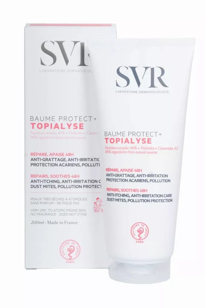 Balsam Protect+ Topialyse, 200ml, SVR regenerează și revitalizează hidratează intens regenerează bariera pielii Mod de utilizare: Se aplică pe pielea curată, cu mișcări circulare și se masează ușor. Efect: Hidratare, calmare, revitalizare, protecție împotriva influențelor externe Prezentare: 200ml