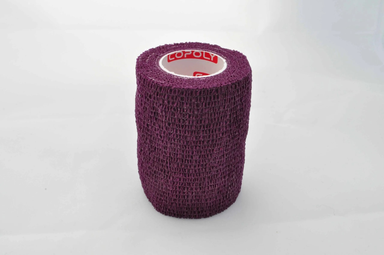 Bandaj autoadeziv 7,5cm x 4,5m, violet-burgundy, Copoly Pansamentul coeziv flexibil Copoly are o combinație de rezistență elastică generală din pânză nețesută din poliester și acoperire cu latex care permite proprietăți de coeziune. Autoaderare îmbunătățită Absolut flexibil și respirabil Rezistenta mai mare la transpirație și apă Mai multă protecție și pansament pentru răni Caracteristici: Folosit pe scară largă în domeniul medical și in SPORT Autoadeziv, nu este nevoie de cleme sau elemente de fixare Își păstrează dimensiunea inițială, nu se va strânge! Rezistă la transpirație și respirabil Bine flexibil și respirabil Se indepărtează rapid și ușor cu mâna, fără reziduuri lipicioase Indicatii: Bandaj coeziv Protejeaza pansamentele si plagile Antrenamente si competitii sportive Tratamente medicale pentru pansamentul chirurgical Produse de prim ajutor Identitatea animalelor prin culori diferite Legarea copitei sau a membrelor la animale etc. Prezentare: 1 buc 7,5cm x 4,5m