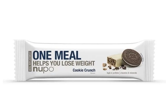 Baton One Meal Cookie crunch, 60 g, Nupo Batonul One Meal Cookie Crunch este un baton moale și delicios, produs înlocuitor de masă pentru pierderea în greutate și controlul greutății* – bogat în gust! Cu alte cuvinte, obțineți un conținut ridicat de proteine și fibre. Combinat cu toate vitaminele și mineralele vitale împreună cu acidul linoleic esențial într-o singură masă. Toate acestea pentru aprox. 200 kcal – ușor și convenabil. În mod unic, acest baton vă oferă un amestec de proteine din soia și lapte pe bază de plante, combinat cu o textură crocantă de chipsuri de soia umflate și binecunoscutul gust delicios al unui fursec – nimic altceva decât delicios! Folosit ca înlocuitor de masă de două ori pe zi, în contextul unei diete cu restricții energetice, One Meal Bar contribuie la pierderea în greutate*.*Înlocuirea unei mese zilnice cu un înlocuitor de masă contribuie la menținerea greutății după pierdere în greutate. Înlocuirea a două mese zilnice dintr-o dietă cu înlocuitori de masă contribuie la pierderea în greutate. Este important să menții o alimentație variată și echilibrată și un stil de viață sănătos. Cu Nupo One Meal, îți este ușor să iei un înlocuitor de masă sănătos, gustos și complet nutritiv – pentru pierderea în greutate și controlul greutății. Shake-urile, batoanele și clătitele One Meal Nupo sunt ideale pentru zilele aglomerate, pentru antrenament și pentru a vă ține sub control aportul de calorii. UTILIZAȚI ONE MEAL, DACĂ DORIȚI · Un înlocuitor de masă pentru 1-2 din mesele principale ale zilei – cu doar aprox. 200 de calorii pe masă. · Toate proteinele, fibrele, vitaminele și mineralele de care aveți nevoie, ambalate convenabil într-o masă. · Un înlocuitor de masă pentru pierderea în greutate și controlul greutății. CU ACEST BATON, VEI PRIMI : · Un înlocuitor de masă delicios și cu conținut scăzut de calorii, pe care îl poți lua cu tine oriunde. · O soluție bogată în proteine și fibre pentru diminețile aglomerate și după-amiezele stresante. · Un înlocuitor de masă cu conținut scăzut de calorii și hrănitor înainte și după antrenament.