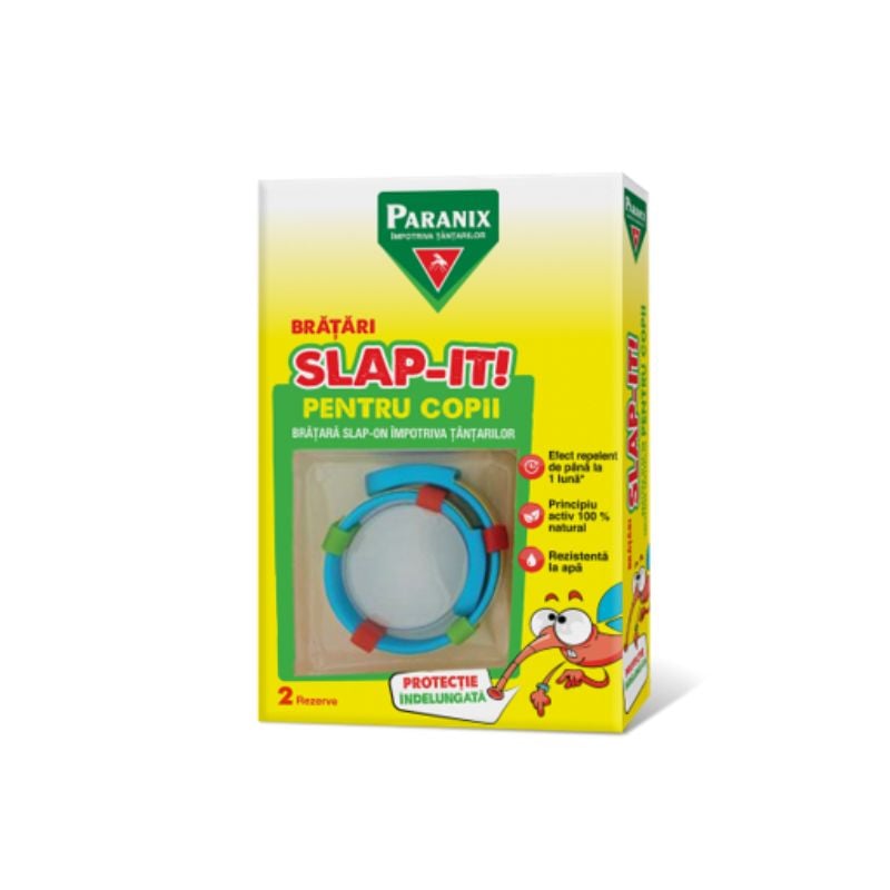 Bratara ce ofera protectie impotriva tantarilor pentru cei mai mici membri din familie, intr-o modalitate, distractiva, fara a intra in contact direct cu igredientul activ si de lunga durata (1 luna). Cei mai mici membri din familie au nevoie de o protectie delicata. Bratara „”Slap on”” este o modalitate lipsita de complicatii, distractiva si de lunga durata, de a va proteja copiii de muscaturi.