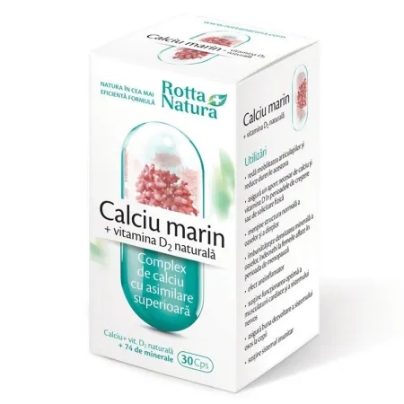 Calciu Marin + Vitamina D2 naturală, 30 capsule, Rotta Natura