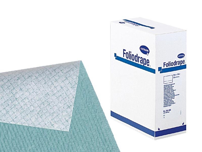 Camp steril operator Foliodrape 37,5x45cm, 1 bucata, Hartmann Realizate dintr-un strat superior superabsorbant din material netesut, dublat cu un strat laminat, moale din film de polietilena. Campurile chirurgicale Foliodrape® Protect sunt impermeabile la umezeala si bacterii, rezistente la tractiune si cu un grad foarte scazut de scamosare. In plus, campurile chirurgicale Foliodrape® Protect sunt foarte usor de manevrat si aplicat. Prezentare: 1 bucata