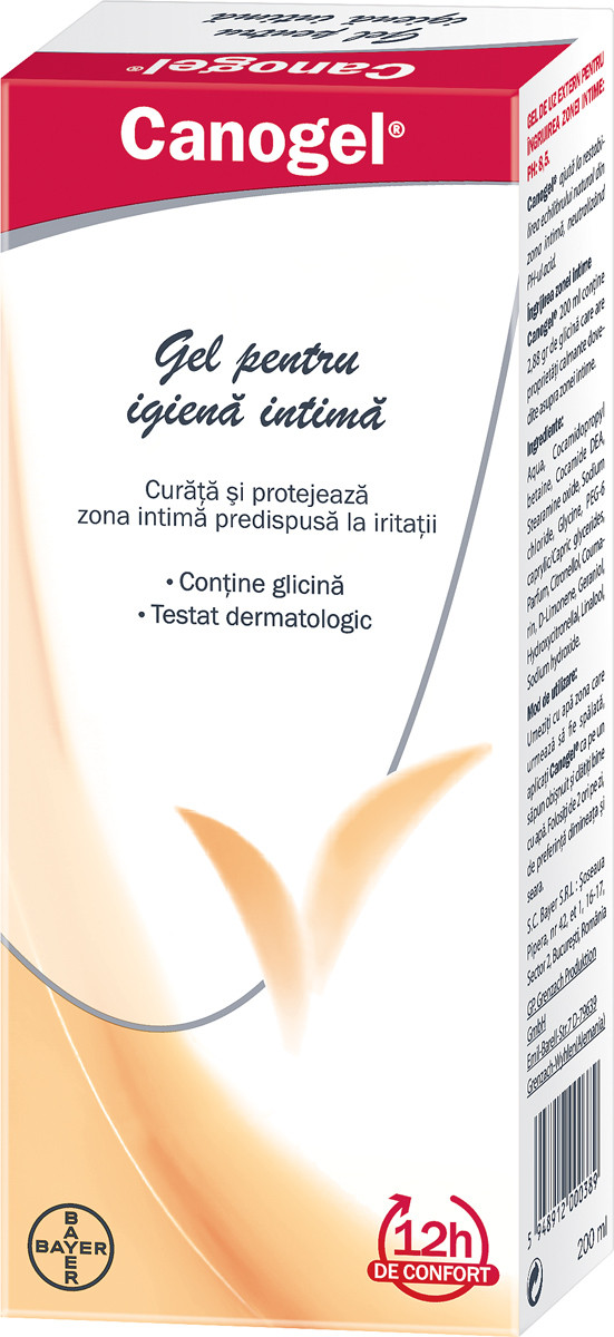 Canogel 200 ml, gel igiena intima Este un produs de uz extern creat special pentru igiena si protectia zonei intime. – ajuta la restabilirea echilibrului natural al zonei intime. – ajuta la calmarea zonei intime sensibile, predispuse la iritatii. Contine glicina cu proprietati calmante dovedite. Ofera o senzatie de prospetime timp de 12 ore. Mod de administrare: Uz extern. Umeziti cu apa zona care urmeaza sa fie spalata, aplicati Canogel ca pe un sapun obisnuit si clatiti bine cu apa. Folositi de doua ori pe zi, de preferinta dimineata si seara. Acest gel se utilizeaza conform etichetei/informatiilor de pe ambalaj si conform recomandarilor medicului si farmacistului. Prcautii: Nu utilizati Canogel daca sunteti hipersensibila (alergica) la oricare dintre componentele produsului. Acesta este un produs de uz cosmetic. Cititi intotdeauna informatiile de pe ambalaj/prospect inainte de utilizare. Discutati cu medicul sau cu farmacistul daca aveti neclaritati. Ingrediente active: 200 ml gel contin 2.88 g glicina. Mod de prezentare: 200 ml gel.