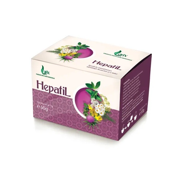Ajuta la calmarea durerilor abdominale, avand si actiune dezinfectanta, fluidifica bila, usureaza eliminarea ei, stimuleaza secretia biliara, favorizeaza eliminarea gazelor intestinale si ajuta la cresterea functiei antitoxice a ficatului. Mod de administrare: La 250 ml apa fierbinte se adauga 2-3 plicuri de ceai. Se lasa acoperit 10-15 minute. Se beau 3 ceaiuri pe zi, neindulcite, cu 1 ora inaintea meselor principale. Compozitie: Cardui marianae fructus (fructe de armurariu), Chelidonii herba (iarba de rostopasca), Menthae folium (frunze de menta), Millefolii flos (flori de coada soricelului), Frangulae cortex (scoarta de crusin), Chamomillae flos (flori de musetel), Foeniculi fructus (fructe de fenicul). Indicatii: Recomandat in dieta afectiunilor ficatului.