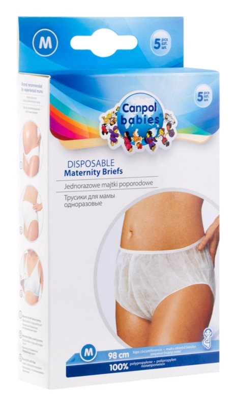 Chilot postnatal de unică folosință, M, 9/598, Canpol Proprietăți Chiloții postnatali Canpol Babies Maternity Briefs sunt concepuți pentru a oferi confort și igienă în primele zile după naștere, atunci când purtarea lenjeriei clasice poate fi neplăcută. Sunt realizați din materiale delicate, de unică folosință, care previn iritarea epidermei sensibile. Dispun de elastic în talie și în zona inghinală pentru o fixare confortabilă. Mod de utilizare Se utilizează după naștere, conform necesităților. Sunt ideali pentru perioada petrecută în maternitate și pentru primele zile de recuperare. Ingrediente Material textil moale, hipoalergenic, adecvat pentru pielea sensibilă. Precauții Produs de unică folosință. A se păstra într-un loc uscat și ferit de umezeală. A nu se lăsa la îndemâna copiilor. Prezentare Pachet x 5 bucăți Mărime: M