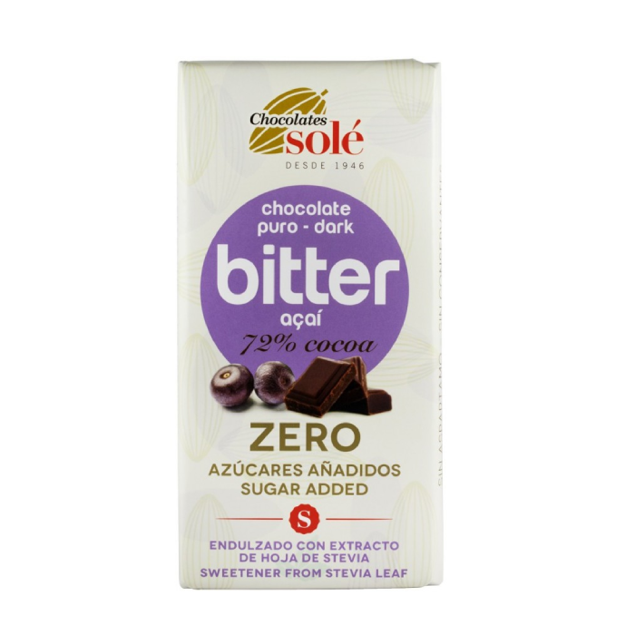 Ciocolata cu 72% cacao si acai indulcita cu stevie, 100 g, Chocolates Sole