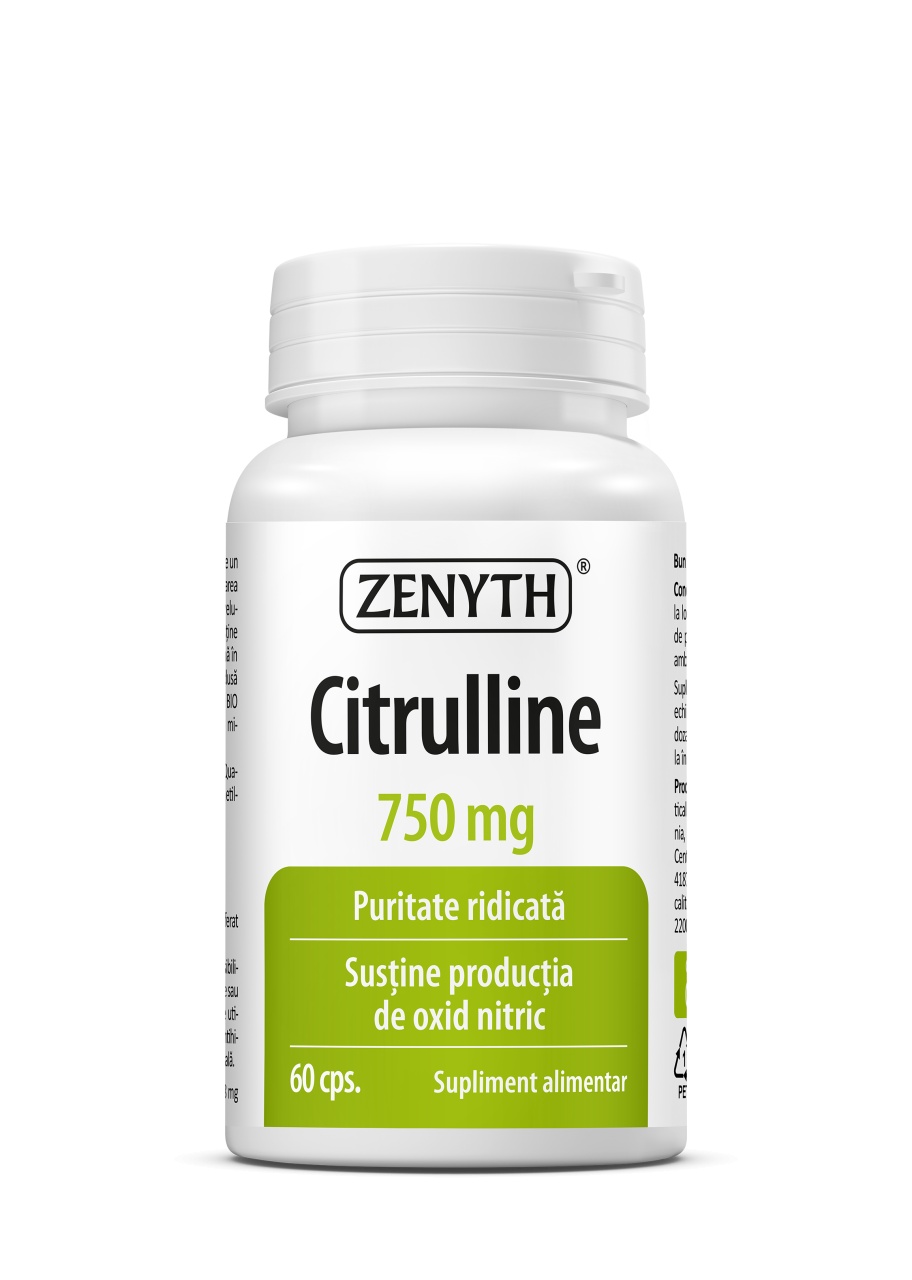 Citrulline 750 mg este un supliment alimentar pe bază de L-citrulină pură (Kyowa Quality®) , un aminoacid neesențial transformat în organism în L-arginină , precursor al oxidului nitric (NO) . Creșterea nivelului de oxid nitric contribuie la dilatarea vaselor de sânge , susținând astfel circulația optimă, scăderea tensiunii arteriale și funcția erectilă. Îmbunătățește fluxul sangvin și sănătatea cardiovasculară Poate contribui la reducerea tensiunii arteriale la persoanele cu pre-/hipertensiune Ajută la reducerea oboselii și la susținerea rezistenței musculare în timpul antrenamentelor intense Poate sprijini performanța sexuală la bărbați prin stimularea circulației periferice Efect anticatabolic – reduce degradarea țesutului muscular Contribuie la detoxifierea ficatului Ingrediente / capsulă: 100% L-citrulină (Kyowa Quality®) – 750 mg Capsulă vegetală: hidroxipropilmetilceluloză Kyowa Quality® și KQ Logo sunt mărci înregistrate de KIOWA HAKKO BIO CO., LTD. Mod de administrare: Adulți: 2 capsule, de 1–3 ori pe zi, de preferință în timpul meselor și/sau după efort fizic, sau conform recomandării specialistului. Atenționări: Nerecomandat copiilor sub 12 ani, femeilor însărcinate sau care alăptează. Contraindicat persoanelor cu hipersensibilitate la citrulină. Nu se recomandă asocierea cu medicamente antihipertensive (poate scădea tensiunea arterială). Suplimentele alimentare nu înlocuiesc o dietă echilibrată și un stil de viață sănătos. Prezentare: Flacon cu 60 capsule vegetale.