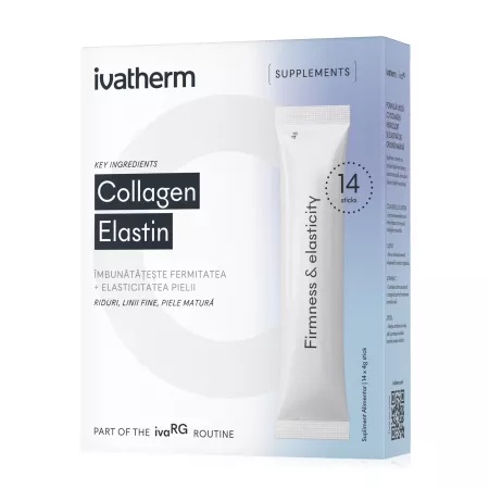 Colagen si Elastina, 14 plicuri, Ivatherm Suplimentul alimentar contribuie la valorificarea putererii colagenului si a elestineri hidrolizate, din piele de pește sălbatic, pescuit în nordul Franței. Caracteristici: Colagen și Elastină hidrolizate de origine marină: Peptidele de colagen și elastină hidrolizate contribuie la reducerea aspectului ridurilor și liniilor fine. Obținute din pielea de pește sălbatic din Oceanul Atlantic, aceste peptide sunt hidrolizate enzimatic pentru a contribuie la o absorbție optimă și o eficacitate maximă. L-lizină: Aminoacid esențial, contribuie la sprijinirea sintezei colagenului Vitamina C naturală din Acerola: Puternic antioxidant, vitamina C contribuie la stimularea sintezei colagenului și la protejarea pielii împotriva daunelor oxidative, contribuind la o piele fermă și elastică. Mod de utilizare: Pentru rezultate optime, amestecă conținutul unui plic în 150 ml de apă sau în băutura preferată și consumă 1/2 plicuri pe zi, timp de cel puțin 3 luni. Ingrediente: Proteină hidrolizata din peste (colagen, elastina), maltodextrina, pudră de capsune, arome naturale, pulbere de suc de sfecla rosie, sue concentrat de acerola (Malpighia glabra), acid: acid malic, aminoacid (L-lizina), minerale (gluconat de zinc), colorant: beta-caroten, îndulcitor: glicozide steviol din Stevia. * Ingredientele enumerate aici sunt cele conținute în cea mai recentă formulare a acestui produs. Întrucât pot exista diferențe între formulări aprobate anterior, întotdeauna luați in considerare lista de ingrediente de pe ambalaj.” Prezentare: 14 plicuri