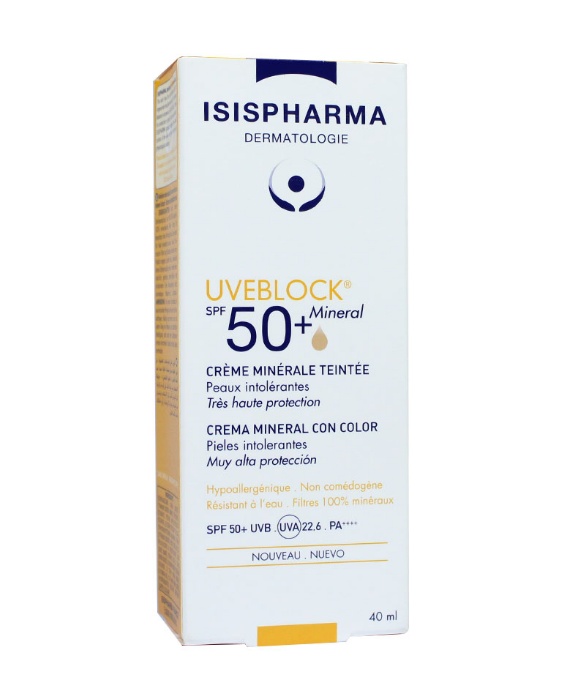 Crema cu protectie solara Uveblock SPF50+ Tinted Mineral, 40ml, Isis Pharma