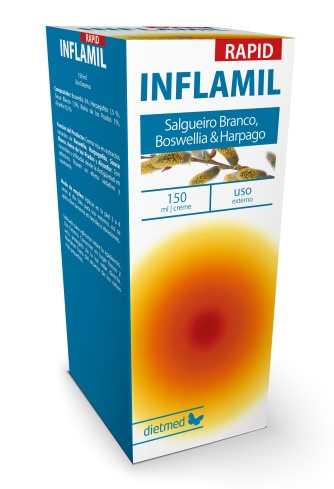 Crema Inflamil, 150ml, Dietmed Ajută la ameliorarea durerilor, a inflamației și rigidității articulare. Conține cele mai cunoscute și utilizate extracte vegetale pentru sănătatea articulațiilor. Contribuie la: menținerea sănătății articulațiilor prin: ameliorarea durerilor și a inflamației preîntâmpinarea și întârzierea degradări acestora redarea mobilității și creșterea rezistenței la efort a țesutului articular inhibarea fenomenelor inflamatorii cronice ameliorarea durerilor articulare și musculare specifice răcelilor și gripelor Compoziție: Boswellia 3% Gheara diavolului 1,5% Salcie alba 1,5% Crețușcă 1% Camfor 0.2% Mod de administrare: Se recomandă aplicarea topică de 3-4 ori/zi, sau conform recomandării consultantului de specialitate. Nu se recomandă aplicarea pe țesuturi lezate sau iritate. Este destinat exclusiv utilizării externe. Prezentare: 150 ml