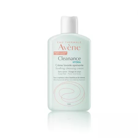 Crema pentru curatarea tenului Cleanance Hydra, 200ml, Avene Proprietati: restabilește confortul și filmul hidrolipidic al pielii; cremă de curățare cu pH fiziologic curăță și respectă sensibilitatea pielii uscate și iritate de tratamentele medicale antiacneice; are o bază de curățare delicată cu ingrediente active hidratante și nutritive; calmeaza pielea fragila; conține apă termală Avène. Mod de utilizare: Se aplică dimineața și/sau seara pe fața umedă, se aplică pe ten și pe gât cu mișcări circulare, se clătește bine, apoi se usucă cu un prosop fără a freca. Pentru un plus de catifelare, pulverizați, la final, apa termală Avène. Ingrediente: AVENE THERMAL SPRING WATER (AVENE AQUA), WATER (AQUA), GLYCERIN, SODIUM COCOAMPHOACETATE, COCO-GLUCOSIDE, SODIUM MYRISTOYL GLUTAMATE, GLYCOL DISTEARATE, GLYCERYL OLEATE, SODIUM CHLORIDE, ACRYLATES/C10-30 ALKYL ACRYLATE CROSSPOLYMER, CAPRYLYL GLYCOL, CITRIC ACID, FRAGRANCE (PARFUM), GLYCERYL LINOLEATE, GLYCERYL LINOLENATE, GLYCERYL PALMITATE, GLYCERYL STEARATE, GLYCINE SOJA (SOYBEAN) OIL (GLYCINE SOJA OIL), HYDROGENATED PALM GLYCERIDES CITRATE, PEG-30 DIPOLYHYDROXYSTEARATE, PEG-40 HYDROGENATED CASTOR OIL, PROPANEDIOL, SALICYLIC ACID, SODIUM BENZOATE, SODIUM DEXTRAN SULFATE, SODIUM HYDROXIDE, TOCOPHEROL, TRIDECETH-6 Prezentare: 200ml
