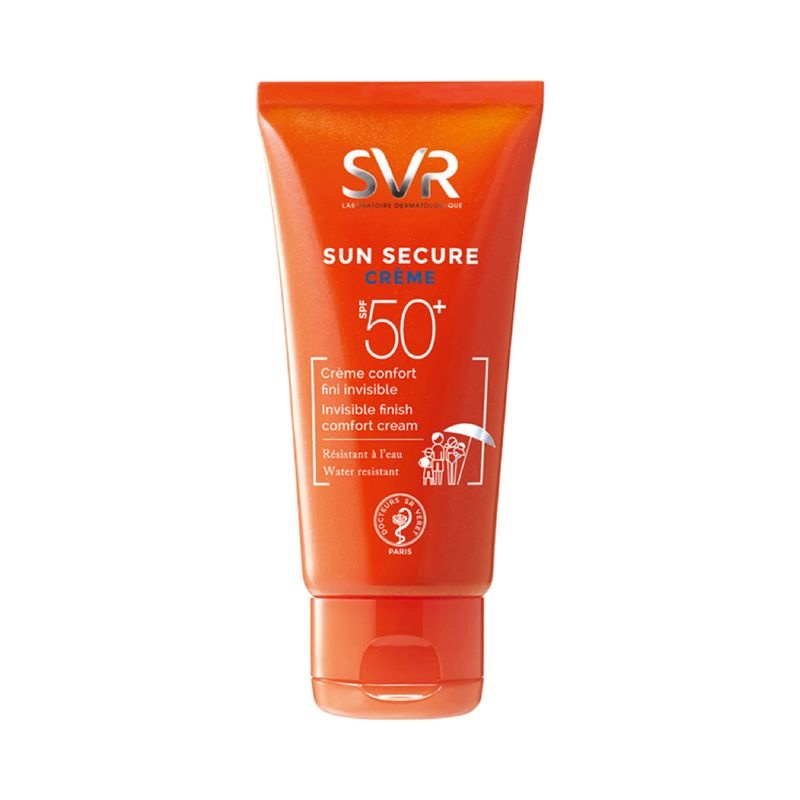 Crema protectie solara Sun Secure SPF50+, 50ml, SVR Crema protectie solara Sun Secure SPF50+ este potrivita oentru toate tipurile de piele, in special cea hipersensibila la soare, normala spre uscata. Bebelusi de la nastere, copii, adulti. Pentru fata. Caracteristici Crema protectie solara Sun Secure SPF50+ Crema ce lasa un film invizibil, non lipicios. Reduce senzatia de piele care tine Protectie solara inalta UVB + UVA + spectru vizibil + infrarosu Sistem ultra performant de filtrare anti UVA/UVB Reparare indelungata a degradarilor oxidative cauzate de razele solare Reparare ADN in celulele implicate Rezistenta la apa, transpiratie si frecare Aplicare facila chiar si pe pielea uda. Textura onctuoasa, catifelata, usor de aplicat. Se absoarbe usor, este rezistenta la apa, transpiratie si frecare. Protectie indelungata, 8 H Parfum delicat de vara, fara alergeni, non fotosensibilizanti Fara alcool, alergeni, parabeni, uleiuri minerale, octocrilen, propilen glicol Filtre 100% organice Non fotosensibilizant. Non comedogenic, hipoalergenic Testata sub control dermatologic Compozitie – Complex Integral Secure Tehnology cu protectie tripla impotriva tuturor razelor solare 1. La suprafata – Protectie impotriva radiatiilor cu sistem protector de filtrare inalt: – SVR a selectat cele mai eficiente, stabile sisteme de filtrare foto stabile UVB/UVA SPF 50/SPF 50+ care confera protectie de pana la 8 ore, rezistenta la apa, transpiratie si nisip. 2. La nivelul celulelor – Protectie biologica la nivelul celulelor: – Complex beta-caroten (protejeaza si repara) – Detoxofanul extras din Macris (care stimuleaza detoxifierea) intareste actiunea anti-radicalilor liberi prin stimularea mecanismelor naturale de aparare ale pielii 3. In miezul celulei – Reparare a ADN-ului – Niacinamida sau Vitamina B3 sau Vitamina PP – cunoscuta pentru proprietatile sale calmante si reparatorii, protejeaza si si repara ADN-ul, reduce hiperpigmentarile si elastoza solara. Mod de utilizare: Inaintea expunerii la soare aplicati omogen o doza suficienta pentru acoperirea fetei, reinnoiti frecvent aplicarea. Prezentare: 50ml