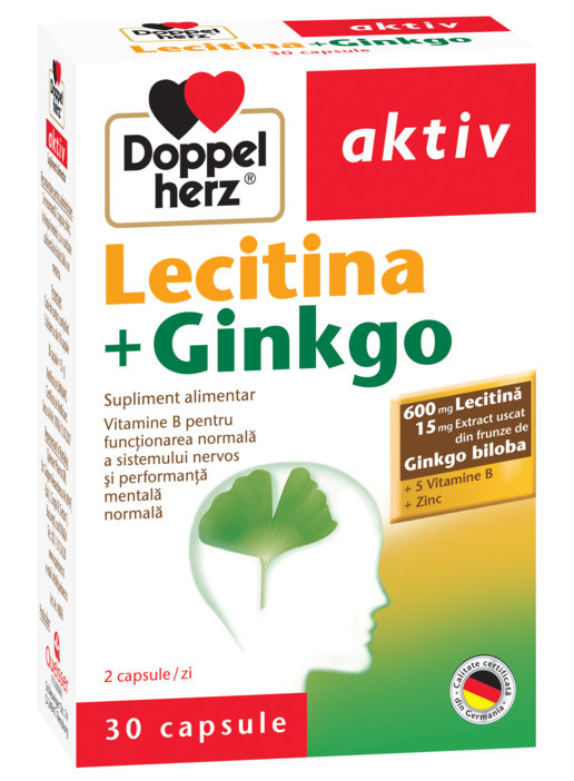 Lecitina+Ginkgo, 30 capsule, Doppelherz Lecitina este un fosfolipid important, necesar tuturor celulelor din organism. Este considerata piatra de temelie in constructia membranei celulare. Suplimentarea cu Lecitina este necesara pentru mentinerea starii de sanatate generale. Solicitarile deosebite, precum: o alimentatie neechilibrata, varsta inaintata, perioadele de efort fizic si psihic, pot cond