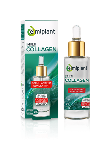 Serul Multi Collagen contine:1. COLLAGEN RESTORER*, ingredient premiat, peptida antirid eficienta ce stimuleaza sinteza a 6 elemente esentiale pentru regenerarea pielii: 3 tipuri de COLAGEN (tipul I, III,IV), fibre esentiale de sustinere a pielii si ACID HIALURONIC. *COLLAGEN RESTORER este ingredient premiat al categoriei “25 de ani de inovatie” în cadrul premiilor IN-COSMETICS2. COLAGEN NATURAL ACTIV3. ACID HIALURONIC CU GREUTATE MOLECULARA MICA4. H2O INTENSERezultate demonstrate clinic:Imediat dupa utilizare pielea se simte mai neteda si eficient hidratata**Dupa 6 zile de utilizare lungimea ridurilor este redusa cu pâna la 24%**Dupa 4 saptamani de utilizare conturul fetei este vizibil remodelat: 85%, liniile fine sunt vizibil netezite: 85%**, pielea devine vizibil mai ferma, radianta si arata reîntinerita: 89%*** Evaluare clinica instrumentala, obiectiva, sub control dermatologic, 10 femei, 35+ ani. ** Autoevaluare sub control dermatologic, 27 femei, 35-55 ani.