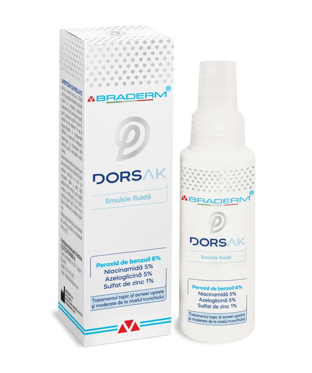 Emulsie fluida spray pentru tratamentului acneei Dorsak, 100ml, Braderm