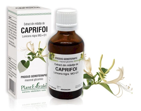 Extract din mlădiţe de Caprifoi negru – Lonicera nigra MG=D1, 50 ml Organotropism Aparat respirator, ficat Beneficii Ajuta la ameliorarea tusei seci si raguselii Sustine sanatatea aparatului respirator Contribuie la restabilirea functiei hepatice Niveluri de actiune Ficat, splina, aparat respirator, articulatii, sistem nervos Compozitie Extract gemoterapic obtinut din mladiţe proaspete de Caprifoi negru (Lonicera nigra), prelucrate conform retetei farmaceutice de macerat glicerinic. Contine alcool etilic de cereale 18% vol. Recomandari principale Aparat digestiv: sprijina restabilirea functiei hepatice Sistem respirator: ameliorarea simptomelor de tuse seaca si raguseala Asocieri recomandate In raguseala: cu Suc de Ridiche neagra – Raphanus sativus si, administrare locala, cu MIRA – apa de gura In tuse seaca: cu Extract din muguri de Carpen – Carpinus betulus MG=D1 si/sau Extract din muguri de Cais – Prunus armeniaca MG=D1 Obs: propunerile de asocieri sunt orientative si pot fi adaptate la necesitatile fiecarui individ. Mod de administrare Adulti si copii peste 7 ani: cate 2 ml, in putina apa, de 3 ori pe zi, inainte de mese. In caz de asociere cu alte gemopreparate: 2 ml o data pe zi, in putina apa, inainte de masa. Copii intre 2 si 7 ani: cate 1 ml, in putina apa, de 3 ori pe zi, inainte de mese. 1 ml = aprox. 25 de picaturi. Durata administrarii: 1-3 luni. Cura se poate repeta dupa 1-2 luni de pauza.