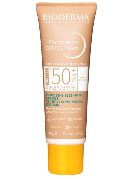 Fluid Cover Touch SPF50+ auriu Photoderm, 40g, Bioderma Proprietati: piele sensibilă, mixtă și grasă, cu cicatrici acneice și pete; protejează împotriva razelor UVA și UVB cu filtre și pigmenți 100% minerali; matifiază pielea timp de 8 ore; brevetul SUN ACTIVE DEFENSE asigură o protecție solară înaltă, împotriva razelor UVA; asocierea de filtre UV și protecția biologică, stimulează capacitatea de autoapărare a pielii pentru a ajuta la menținerea pe termen lung a sănătății pielii expuse la soare; uniformizează, corectează nuanța pielii și acoperă perfect imperfecțiunile datorită unei concentrații înalte de pigmenți minerali; textura lejeră lasă pielea să respire, porii nu sunt blocați, imperfecțiunile sunt reduse zi după zi datorită brevetului Fluidactiv; potrivit pentru pielea inchisă la culoare; toleranță cutanată și oculară foarte bună, în condiții normale de utilizare;- non comedogenic; fotostabil; rezistent la apă, căldură, transfer și umiditate; formulă neparfumată. Mod de utilizare: Pentru utilizare zilnică, se folosește după aplicarea cremei de hidratare. Pentru o acoperire perfectă, cu aspect mat, fără a crea un efect de mască, aplicați produsul pornind din centrul feței spre exterior. Se aplică pe față și gât în mod uniform, înainte de expunerea la soare (reducerea cantității de produs poate reduce nivelul de protecție). Se reaplică în mod frecvent înainte și după înot, ștergere cu prosopul sau activități sportive. Produsul se aplică doar pe pielea sănătoasă. Ingrediente: ZINC OXIDE [NANO], AQUA/WATER/EAU,, ISODODECANE, TITANIUM DIOXIDE (CI 77891), CORN, STARCH MODIFIED, DICAPRYLYL CARBONATE, TITANIUM, DIOXIDE [NANO], POLYGLYCERYL-3 POLYRICINOLEATE, IRON, OXI DES ( C I 7749 2 ) , S I L I C A , POLYGLYCERYL- 3, DIISOSTEARATE, TRIETHOXYCAPRYLYLSILANE, MAGNESIUM, SULFATE, PENTYLENE GLYCOL, PROPANEDIOL,, STEARALKONIUM HECTORITE, IRON OXIDES (CI 77491),, HYDROGENATED LECITHIN, IRON OXIDES (CI 77499),, DIMETHICONE, SODIUM CITRATE, PROPYLENE CARBONATE,, ECTOIN, MANNITOL, PROPYL GALLATE, XYLITOL,, RHAMNOSE, CITRIC ACID, LAUROYL LYSINE, TOCOPHEROL,, FRUCTOOLIGOSACCHARIDES, CAPRYLIC/CAPRIC TRIGLYCERIDE,, LAMINARIA OCHROLEUCA EXTRACT. [BI 2001]. Precautii: A se evita contactul cu hainele. Potrivit pentru adulți. Expunerea îndelungată la soare este o ameninţare gravă pentru sănătate. Nu rămâneţi timp îndelungat la soare chiar dacă folosiţi un produs de protecţie solară. Prezentare: 40g