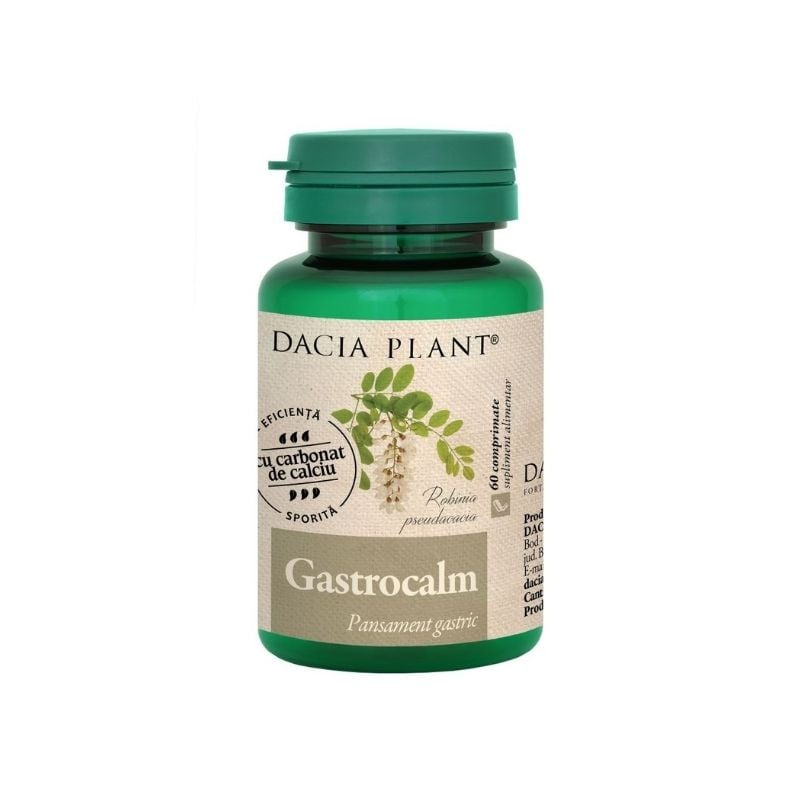 Pansament gastric.Gastrocalm protejeaza mucoasa gastrica, normalizeaza secretia de suc gastric, reduce spasmele care apar la nivelul stomacului. Datorita carbonatului de calciu din compozitie, este eficient in aciditate gastrica, arsuri, dureri de stomac cauzate de aciditate.