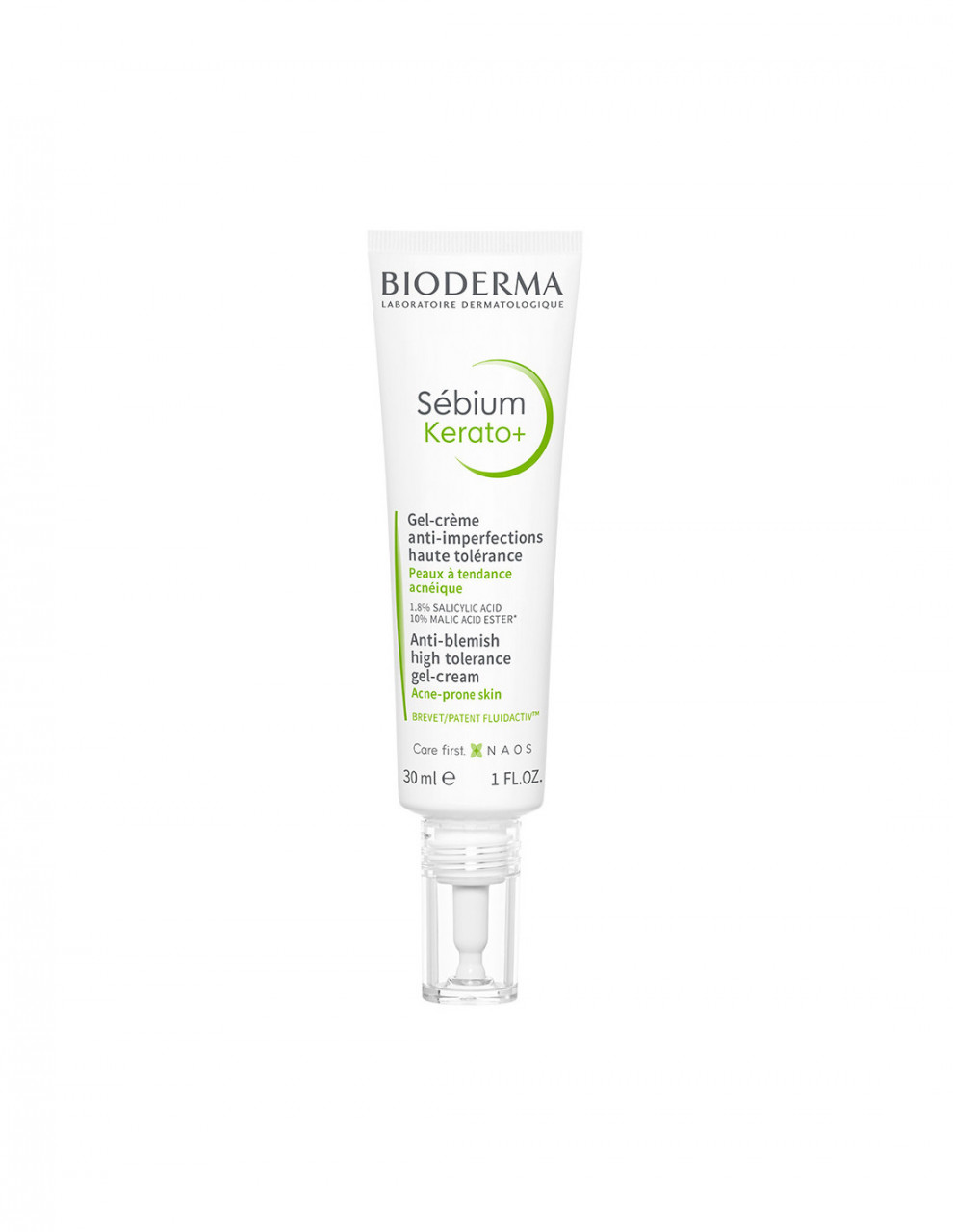 Bioderma Sebium Kerato+, 30ml Laboratoarele de cercetare Bioderma, au dezvoltat un duo de ingrediente active keratolitice (acid silicilic + ester al acidului malic) combinand eficacitatea ridicată impotriva petelor cu toleranta inaltă, pentru a păstra confortul pielii. Sebium Kerato+ reduce rapid petele si punctele negre in timp ce imbunătăteste reinnoirea epidermică pentru a preveni riscul