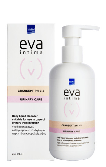 Gel pentru igiena intima Eva Intima Cransept pH 3.5, 250 ml Proprietati: – gel de curățare zilnică adecvat pentru utilizare în caz de infecții ale tractului urinar;; – conceput să ofere curățare delicată și o protecție sporită împotriva infecțiilor tractului urinar; – elimină secrețiile și mirosurile din zona organelor genitale externe, păstrând umiditatea și fiziologia pielii;