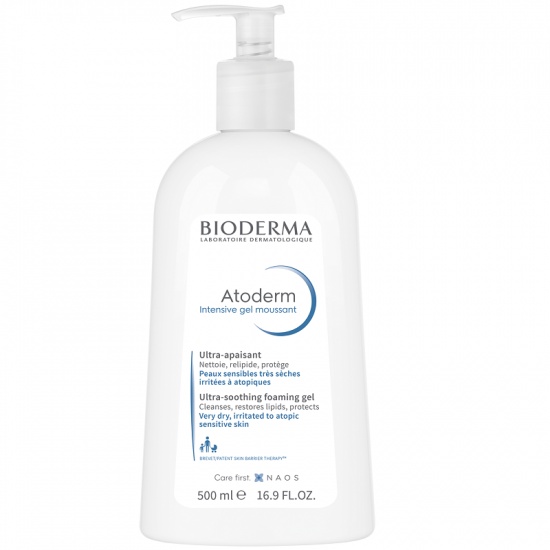 Gel spumant Atoderm Intensive,500 ml, Bioderma Gel spumant emolient care reface echilibrul lipidic. Piele foarte uscat, atopică. Proprietăți: formulat cu agenți de purificare și vitamina PP, Atoderm Intensive Gel Spumant combate proliferarea microorganismelor iritante care agravează uscăciunea cutanată; calmează senzația de disconfort și iritație și contribuie la consolidarea biologică a barierei pielii; pentru față și corp; adulți, copii, sugari; fără parfum. Mod de utilizare: Dimineața și / sau seara – 7 zile pe săptămână. Aplicați Atoderm Intensive Gel spumant pe pielea uscată Masați până face spumă, apoi clătiți bine Uscați cu grijă. Apoi, aplicați Atoderm Intensive Balsam, pentru a preveni o recidivă. Ingrediente: AQUA/WATER/EAU, SODIUM LAURETH SULFATE, LAURYL GLUCOSIDE, PEG-200 HYDROGENATED GLYCERYL PALMATE, DISODIUM EDTA, PEG-7 GLYCERYL COCOAȚE, CAPRYLYL GLYCOL, ZINC SULFATE, SODIUM CHLORIDE, COPPER SULFATE, SODIUM HYDROXIDE, CITRIC ACID, POLYSORBATE 20, NIACINAMIDE, FRUCTOOLIGOSACCHARIDES, DAF PATENTED NATURAL COMPLEX. Prezentare: 500 ml