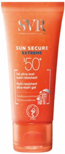 Gel ultra mat pentru protectie solara Sun Secure Extreme SPF50+, 50 ml, SVR Gel ultra mat pentru protectie solara Sun Secure Extreme SPF50+ este recomandat pentru expunere excesiva la soare in conditii extreme, sport (surf, navigatie, ski, drumetii), vant, altitudine. Toate tipurile de piele inclusiv cea sensibila si intoleranta la soare. Fata si zone expuse. Copii peste 3 ani, adulti. Beneficii Gel ultra mat pentru protectie solara Sun Secure Extreme SPF50+ Protectie foarte inalta SPF 50+ UVA + UVB + spectul vizibil + infrarosu asigurata prin tehnologie de securitate integrala. Rezistenta tripla la apa, transpiratie sau frecare Foarte usor de aplicat Textura unica, transparenta, balsam-gel care se absoarbe imediat. Parfum delicat de vara, non fotosensibilizant. Formeaza un strat protector multi-rezistent la apa, frecare, transpiratie Fara alcool, parabeni, octocrilen, ulei mineral, propilen glicol. Non comedogen Parfum subtil, fara alergeni Finisaj mat, non gras, non lipicios Multi rezistent la transpiratie, frecare. Este important sa folosim protectie adecvata conditiilor extreme SPF 50+ la munte si la mare intrucat soarele este mult mai agresiv: La altitudine, razele UV sunt filtrate mai putin de atmosfera Intre 40-95% din totalul de raze UV patrund in apa pana la 25 m Soarele este reflectat de nisip mult mai intens Compozitie Gel ultra mat pentru protectie solara Sun Secure Extreme SPF50+ – Complex Integral Secure Tehnology cu protectie tripla impotriva tuturor razelor solare 1. La suprafata – Protectie impotriva radiatiilor cu sistem protector de filtrare inalt: – SVR a selectat cele mai eficiente, stabile sisteme de filtrare foto stabile UVB/UVA SPF 50/SPF 50+ care confera protectie de pana la 8 ore, rezistenta la apa, transpiratie si nisip. 2. La nivelul celulelor – Protectie biologica la nivelul celulelor: – Complex beta-caroten (protejeaza si repara) – Detoxofanul extras din Macris (care stimuleaza detoxifierea) intareste actiunea anti-radicalilor liberi prin stimularea mecanismelor naturale de aparare ale pielii 3. In miezul celulei – Reparare a ADN-ului – Niacinamida sau Vitamina B3 sau Vitamina PP – cunoscuta pentru proprietatile sale calmante si reparatorii, protejeaza si si repara ADN-ul, reduce hiperpigmentarile si elastoza solara Mod de utilizare Gel ultra mat pentru protectie solara Sun Secure Extreme SPF50+: Inaintea expunerii la soare aplicati omogen o doza suficienta pentru acoperirea fetei, reinnoiti frecvent aplicarea. Prezentare: 50 ml