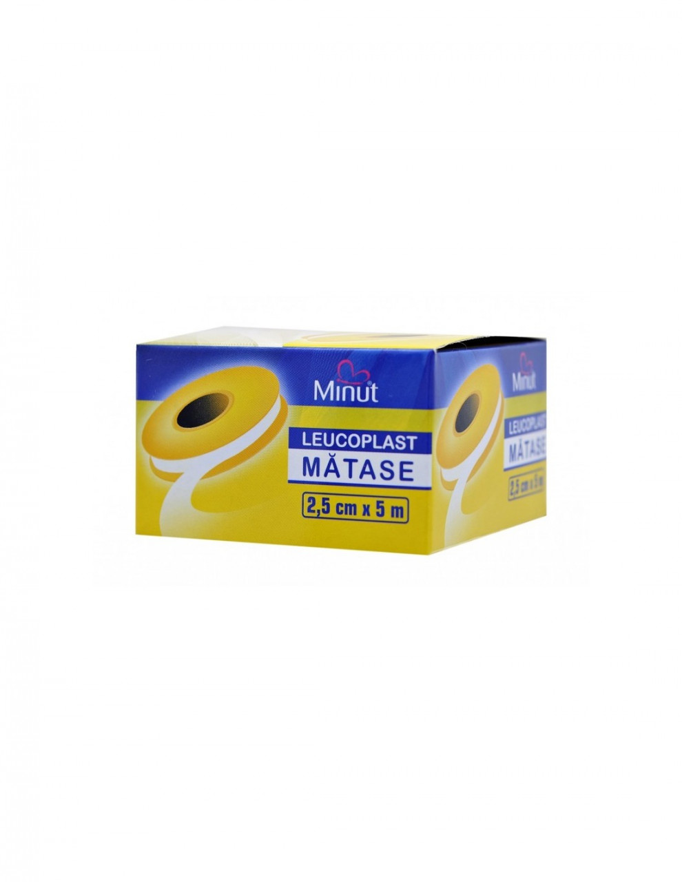 Leucoplast matase Minut – 2.5 cm x 5 m Leucoplast pe suport de matase, permeabil la apa, aer si la vaporii de apa pentru pielea sensibila. Confera o prindere solida si o desprindere usoara si fara durere. Descriere Se aplica pe pielea uscata si curata. Utilizat pentru fixarea pansamentelor medicale pe suprafata pielii. A se pastra la loc inchis si racoros, ferit de lumina soarelui la temperaturi i