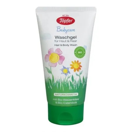 Lotiune de spalare pentru par si corp, 150 ml, Topfer Indicata pentru protectia zilnica a pielii uscate si sensibile a bebelusului, dar si pentru ingrijirea blanda a pielii adultului. Contine ingrediene certificate organic – unt de shea, extract de tarate de grau, ce hranesc si protejeaza pielea, precum si extract de galbenele, cu proprietati emoliente si cicatrizante. Lotiunea are efect hidratant si se absoarbe rapid in piele. Ingrijeşte delicat şi protejează pielea sugarilor, lasand un miros placut. Ingrediente: aqua, Olea europaea fruit oil, caprylic/capric triglyceride, tricaprylin, glyceryl stearate citrate, glycerin, glyceryl stearate, Butyrospermum parki butter, c10-18 triglycerides, Triticum vulgare bran extract, Calendula officinalis flower extract, tocopherol, Helianthus annuus seed oil, Rosmarinus officinalis flower leaf extract, glyceryl caprylate, xanthan gum, sodium citrate, sodium hydroxide, levulinic acid, p-anisic acid, citric acid, parfum, limonene. Prezentare: 150ml.
