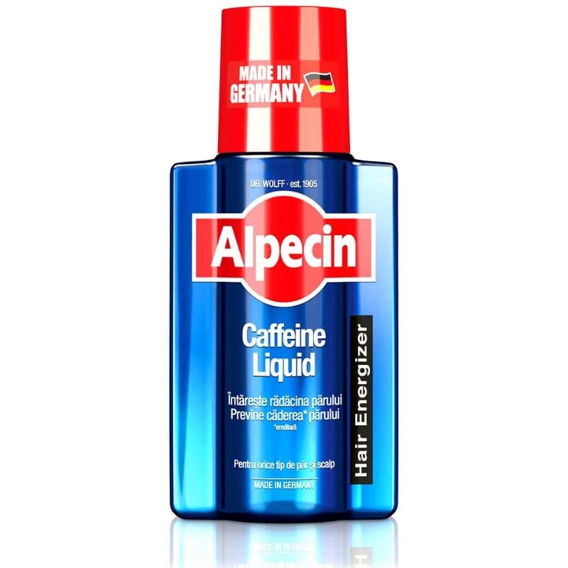 Alpecin Liquid este o solutie eficienta pentru combaterea simptomelor alopeciei androgenice. Combinatia unica de substante active de origine naturala mentine radacinile firelor de par active, contribuind la extinderea etapelor de crestere fata de durata programata genetic a acestora.Complexul activ pe bază de cafeină din Alpecin Caffeine Liquid menține crescut nivelul de energie la rădăcinile firelor de păr și contribuie la extinderea fazelor de creștere ale acestora un timp mai îndelungat decât este predispoziția lor ereditară. La aplicare, produce o senzație de prospețime pe scalp.Ingredientele active migrează de-a lungul firului de păr și se absorb la rădăcini, unde formează un depozit suficient pentru 24 de ore. Rădăcinile firelor de păr devin mai productive, iar creșterea părului este accelerată. Contracarați chiar de la rădăcini pierderea prematură a părului, cu Alpecin Caffeine Liquid.