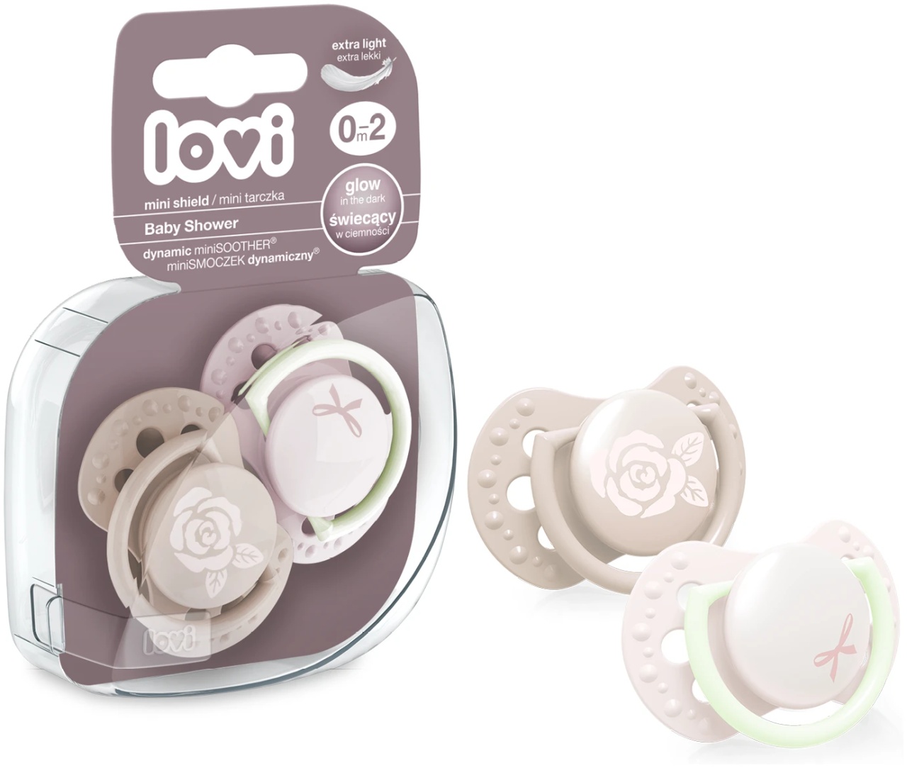 LOVI Suzeta silicon dynamic 0-2 luni baby shower fata, 2buc 22/900 Suzeta dinamică LOVI este fabricată din strat de silicon eterogen, care se comprimă și se extinde odată cu mișcările de supt ale copilului, oferind un confort natural. Forma simetrică a tetinei imită structura mamelonului matern, sprijinind dezvoltarea corectă a aparatului oral și neinterferând cu reflexul de supt. Caracteristici: scut conturat cu orificii pentru ventilare, prindere confortabilă, capac igienic pentru protecția tetinei, previne reflexul de mestecare a tetinei, permite respirația liberă și înghițirea salivei, nu afectează dezvoltarea naturală a vorbirii și a ocluziei dentare. Suzeta LOVI Silicone Dynamic Soother® a fost creată cu ajutorul neurologilor pentru a sprijini dezvoltarea orală sănătoasă a bebelușilor. Instrucțiuni de siguranță: Folosiți întotdeauna sub supraveghere adultă. Verificați produsul înainte de fiecare utilizare. În cazul primelor semne de deteriorare, aruncați produsul. Păstrați produsul departe de copii. Produsul nu este jucărie .