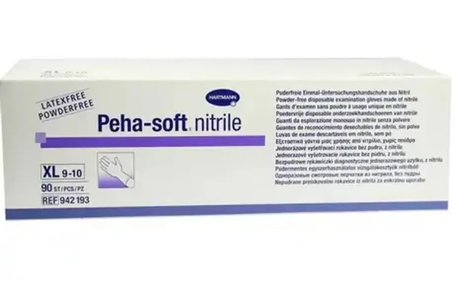 Manusi de examinare Peha-soft nitrile nepudrate albastre, XL, 90 bucati, Hartmann