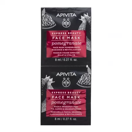 Masca de fata revitalizanta cu cu extras de rodie Express Beauty, 8ml, 2 bucati, ApivitaMasca de fata revitalizanta cu cu extras de rodie Express Beauty, 8ml, 2 bucati, Apivita