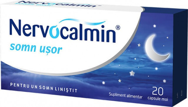 + Livrare gratuităNervocalmin Somn Usor cu Valeriana, 20 capsule, Biofarm Nervocalmin Somn Usor cu Valeriana este un supliment alimentar creat pentru a sustine un somn linistit si odihnitor, pe toata durata noptii. Asocierea dintre melatonina si valeriana contribuie la inducerea naturala a somnului, fara a provoca dependenta sau somnolenta reziduala. Beneficii principale: Induce un somn natural si odihnitor Nu prov