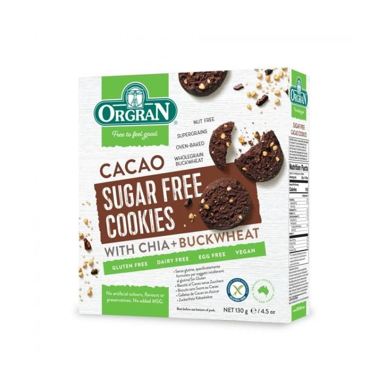 ORGRAN Biscuiti fara zahar cu Cacao, Chia si Hrisca, 130g