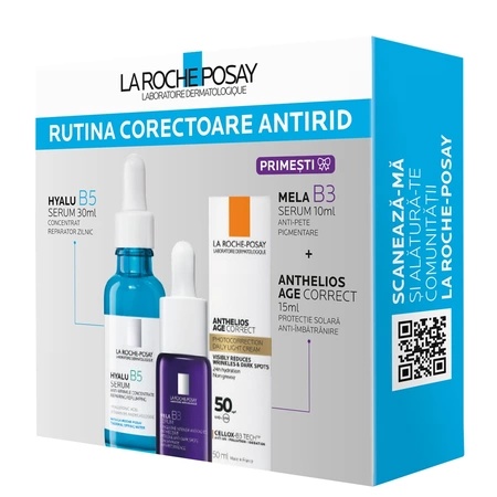 Pachet Hyalu B5 Serum, 30ml + Anthelios Age Correct, 15ml + Mela B3 Serum, 10ml, La Roche-Posay