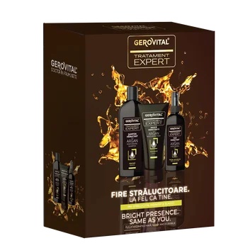 Pachet Sampon hidratant cu argan & keratina, 250ml + Masca hidratanta cu argan, 150ml + Ulei hidratant argan, 100ml, 4467, Gerovital