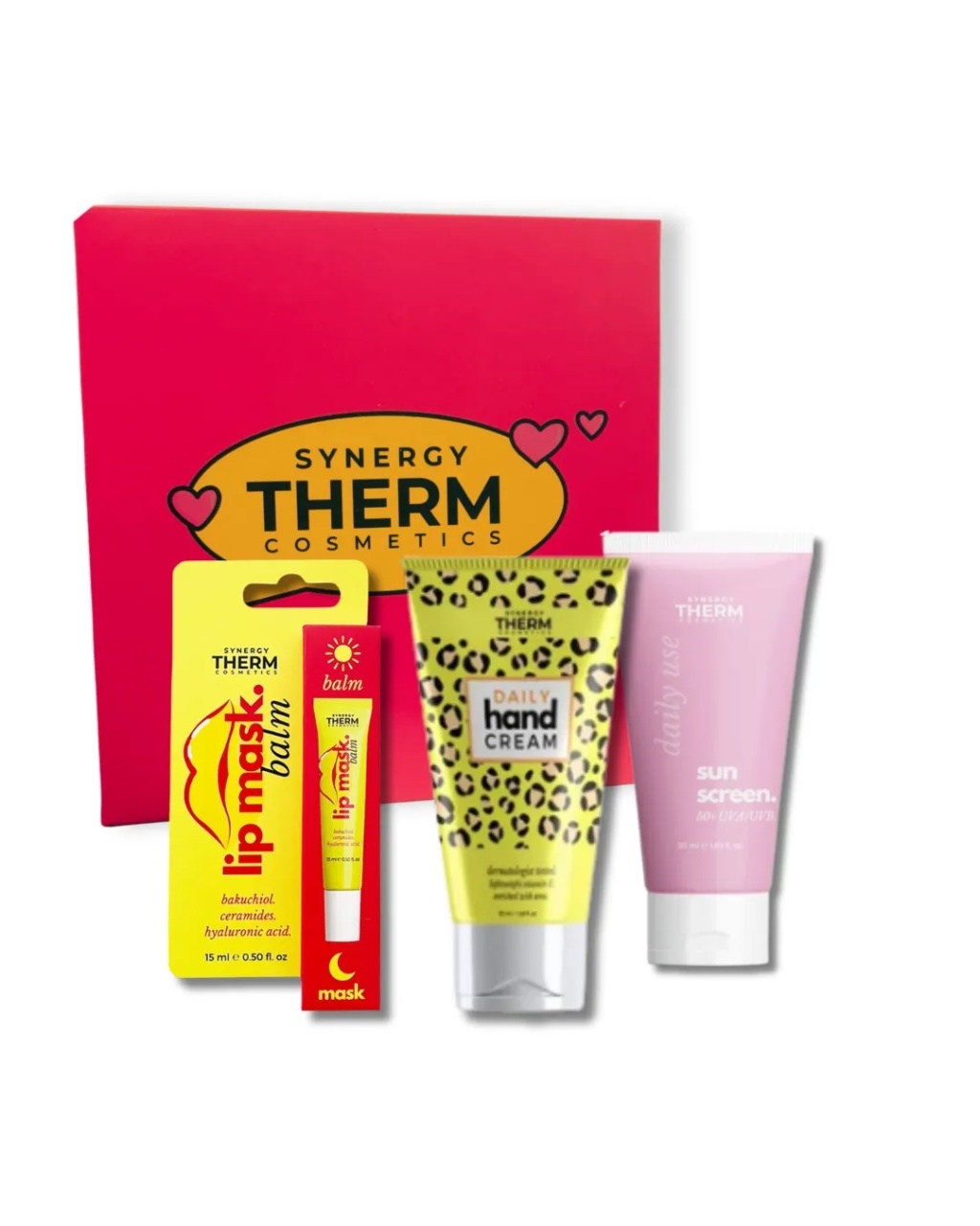 Pachet Synergy Therm: Balsam Buze Lip Mask 15ml + Crema Daily Use Sunscreen SPF50 , 50ml + Crema de maini Daily Hand Cream, 50ml, Synergy ThermPachet Synergy Therm: Balsam Buze Lip Mask 15ml + Crema Daily Use Sunscreen SPF50 , 50ml + Crema de maini Daily Hand Cream, 50ml, Synergy Therm
