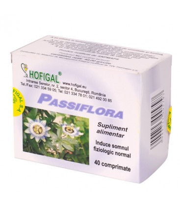 Descrierea produsului: Passiflora Hofigal, 40 capsule: este un supliment alimentar recomandat in stari anxioase, de tensiune psihica sau nevroze. De asemenea, ajuta la calmarea stresului, la ameliorarea spasmelor musculare si convulsiilor. Se recomanda in afectiuni cardiovasculare care apar pe fond nervos, cum ar fi aritmiile, angina pectorala sau hipertensiunea arteriala. Ingrediente: 500 mg pulbere din parti aeriene de Passiflora* (Passiflora incarnata), 200 mg pulbere din radacina de Topinambur* (Helianthus tuberosus), 180 mg extract din parti aeriene de Passiflora* (Passiflora incarnata) si agent de incarcare: amidon din porumb, agenti de glazurare: carbonat de magneziu, miere de albine si fructoza, emulsifiant: hidroxipropilmetilceluloza, agent de intarire: stearat de magneziu, agent antiaglomerant: aerosil. Mod de utilizare: Adulti: cate 2 comprimate de 2 ori pe zi, in timpul meselor principale; in perturbari frecvente ale somnului cate 2 comprimate cu o jumatate de ora inainte de culcare. Copii de peste 12 ani si adolescenti: cate 1 comprimat de 2 ori pe zi in timpul meselor (numai la recomandarea specialistului). Cantitate: 40 capsule. Afectiuni: Anxietate si depresie, Sistem nervos, Afectiuni cardiace.