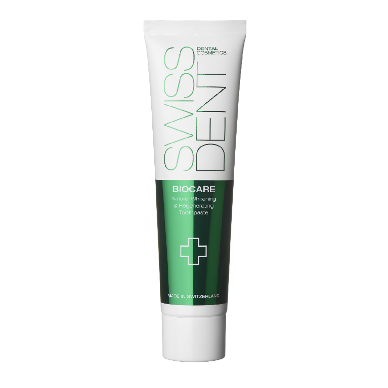 SWISSDENT BIOCARE a fost dezvoltat cu o combinație inovatoare de ingrediente active (biomineralizare) care întărește suprafața dinților și protejează împotriva sensibilității – pentru dinți puternici, sănătoși, care alungă noile decolorări. Ingredientele active se instalează în cele mai mici crăpături și protejează astfel smalțul dentar. Alfa-hidroxiacizii (AHA) contribuie la regenerarea gingivală și susțin reînnoirea celulară. Extractele de plante inhibă formarea plăcii și îmbunătățesc sănătatea gingivale.