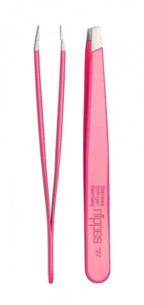 Penseta profesionala roz din inox cu varf inclinat, 727, 1 bucata, Nippes Produsele Nippes indeplinesc cele mai inalte standarde de calitate si sunt realizate sa reziste o viata intreaga. Pentru a mentine acelasi standard de inalta calitate, produsele Nippes sunt realizate doar in Germania la Solingen. Instrumentele sunt realizate doar din otel forjat si intarit cald, oferind consumatorilor produse cu durata lunga de viata. Penseta Nippes 727 este ideala pentru indepartarea cu precizie a firelor de par. Este realizata din otel inoxidabil de calitate premium si este slefuita manual. Varful de prindere inclinat permite prinderea firelor de par foarte scurte sau a celor crescute sub piele. Deosebit de rezistenta, cu un design modern si elegant. Nu se toceste si asigura un pensat extrem de precis de fiecare data. Lungime: 9.5cm. Prezentare: 1 bucata