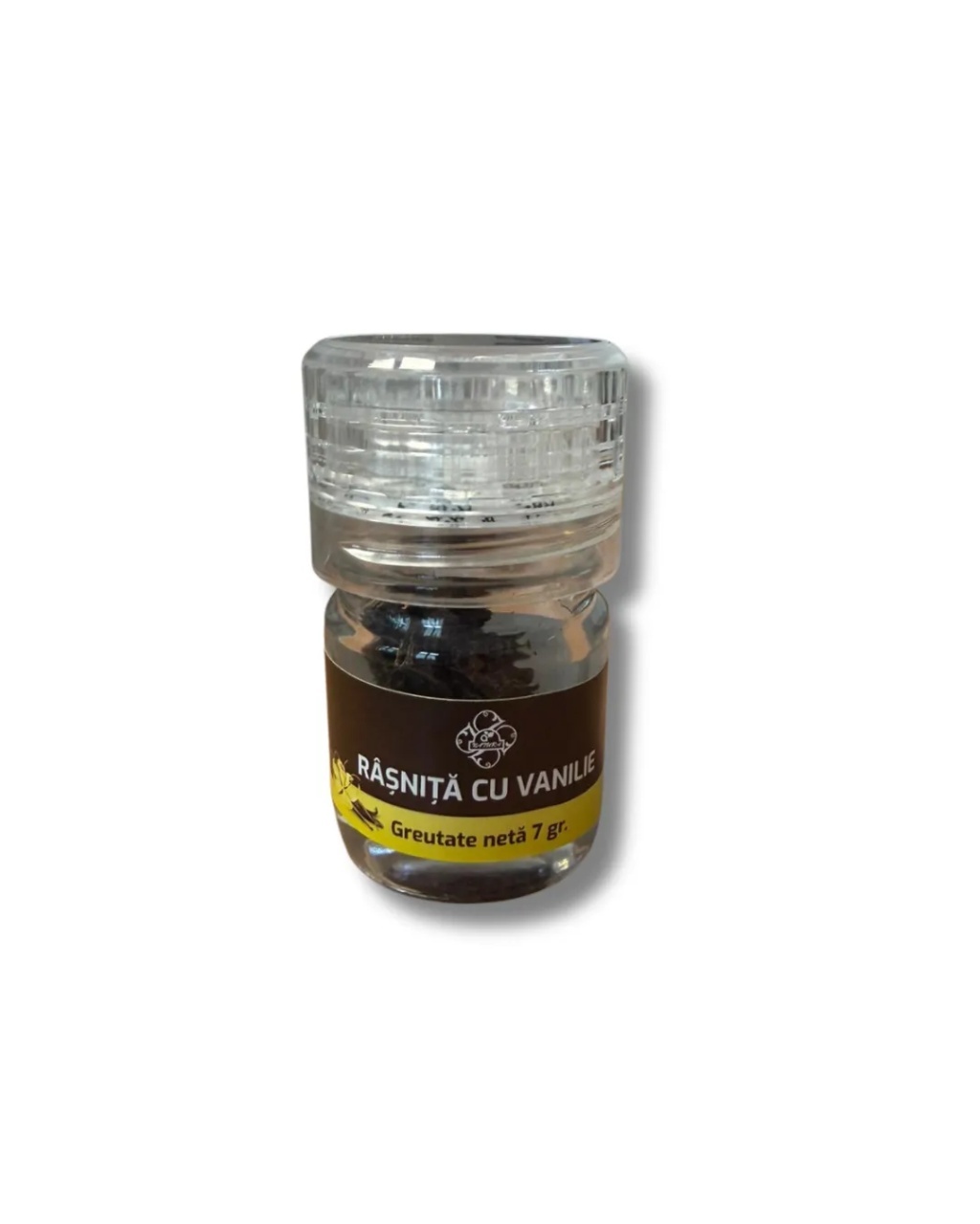 Rasnita cu vanilie, 7g, Bis-Nis Rășniță cu pastaie de vanilie, condiment natural pentru aromatizarea deserturilor, prăjiturilor și băuturilor. Vanilie premium, ambalată într-o mini rășniță de sticlă pentru păstrarea proprietăților și utilizare ușoară. Ingrediente: 7g bucăți păstăi vanilie uscate(3 bucăți) Origine: Madagascar