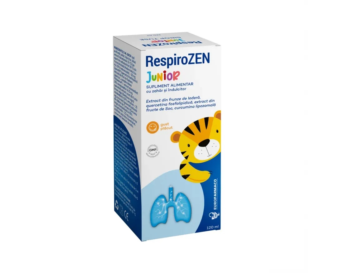 + Livrare gratuităRespirozen Junior sirop, 120 ml, Eurofarmaco Respirozen Junior este un supliment alimentar sub forma de sirop, recomandat ca adjuvant in infectiile respiratorii superioare si in episoadele de tuse la copii. Formula complexa contine quercetina fitozomala (Quercefit®), extract de iedera, soc negru si curcumina lipozomala, ingrediente cu rol in sustinerea confortului respirator si a mecanismelor nat